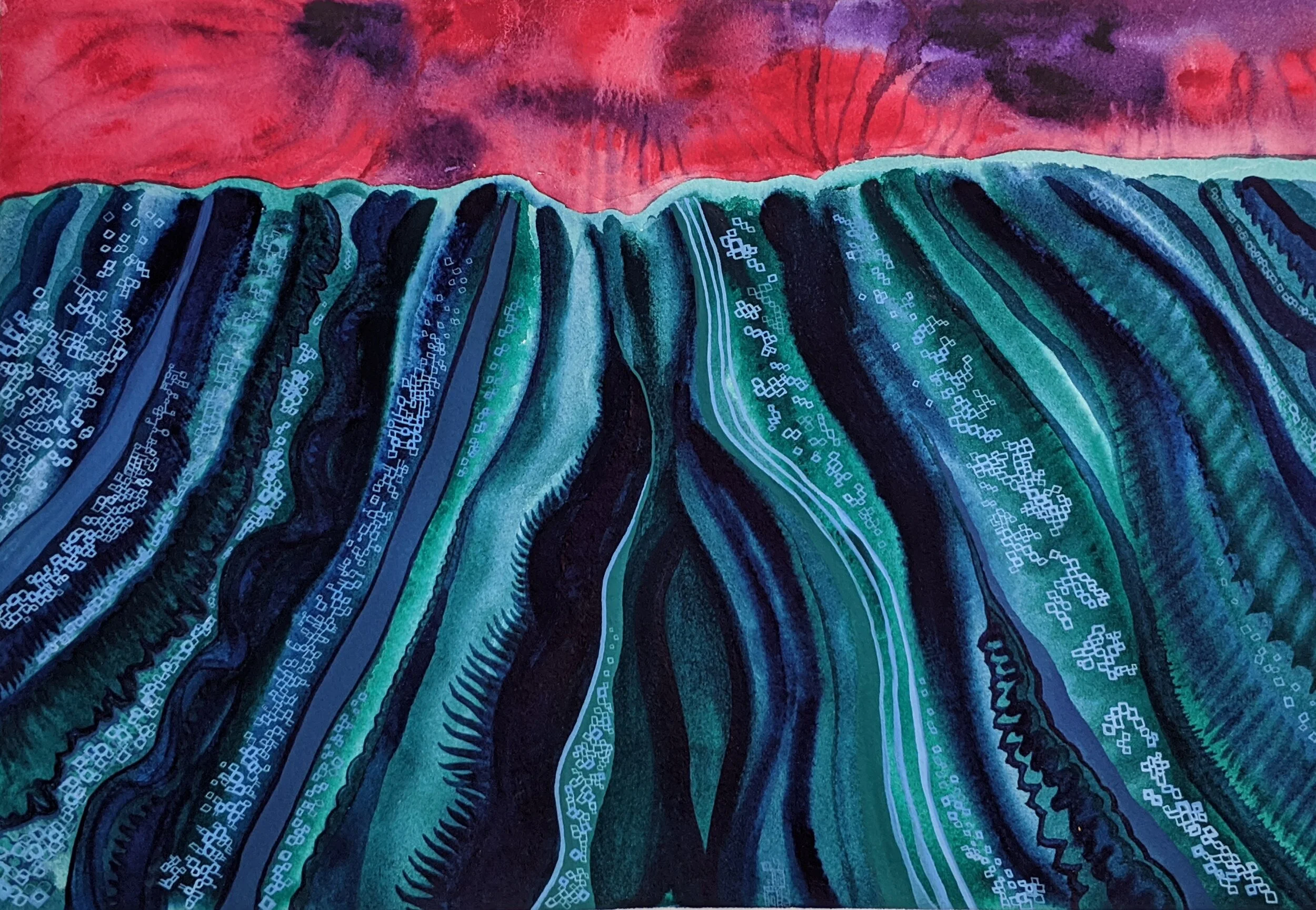 Deep Rain, 6.5 x 9 in, gouache on paper, 2021