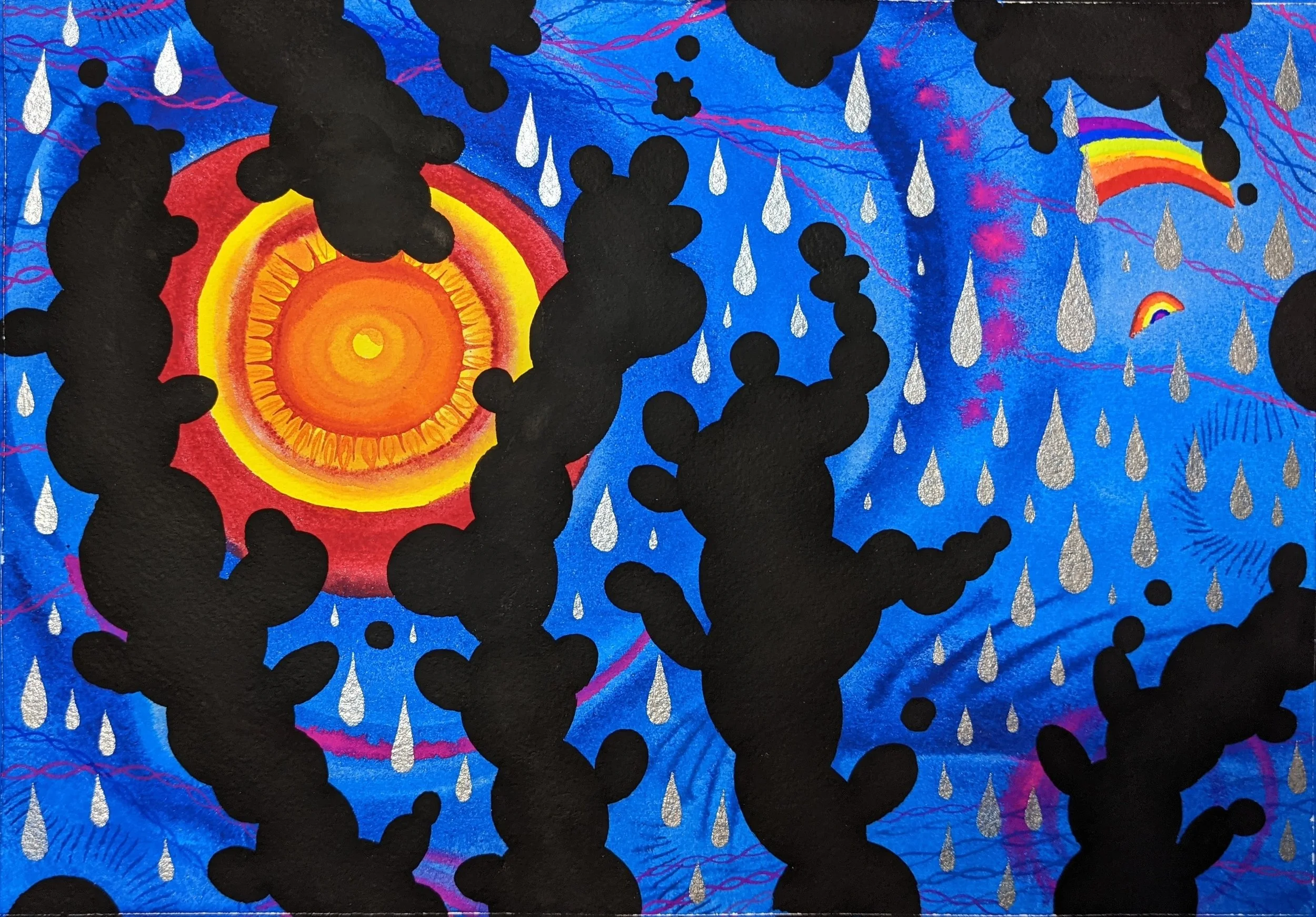 Black Rain, 9 x 13 in, gouache on paper, 2020