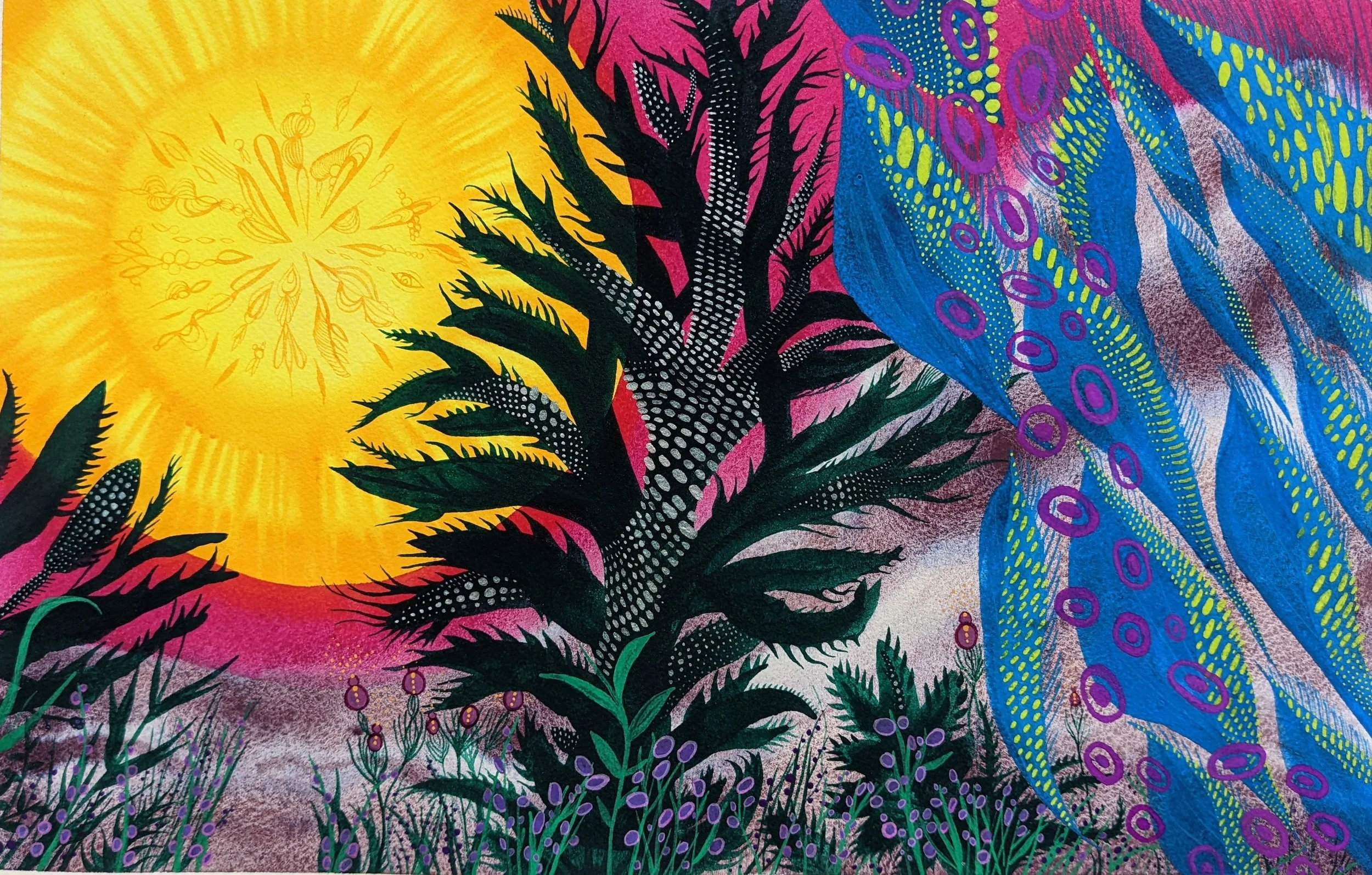 Every Star is a Sun, 8.75 x 13.75 in, gouache on paper, 2021